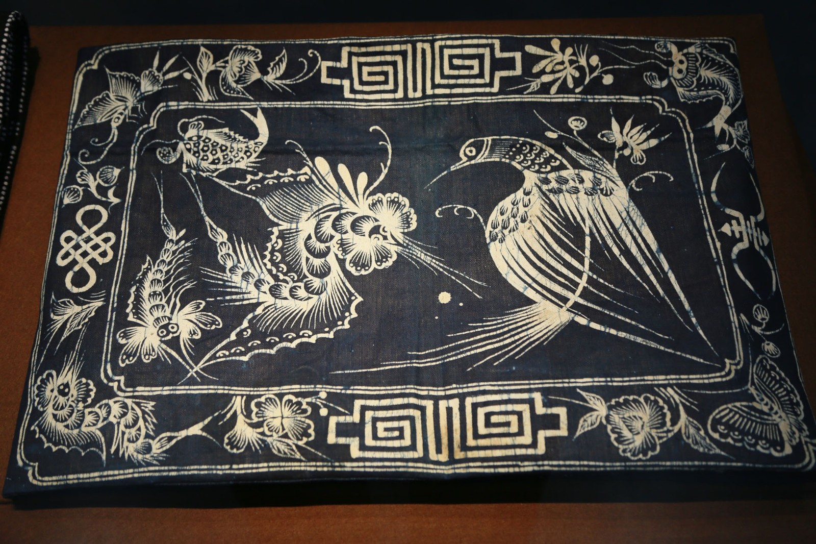 △贵州丹寨蜡染花鸟纹帐帘,南宁市博物馆藏